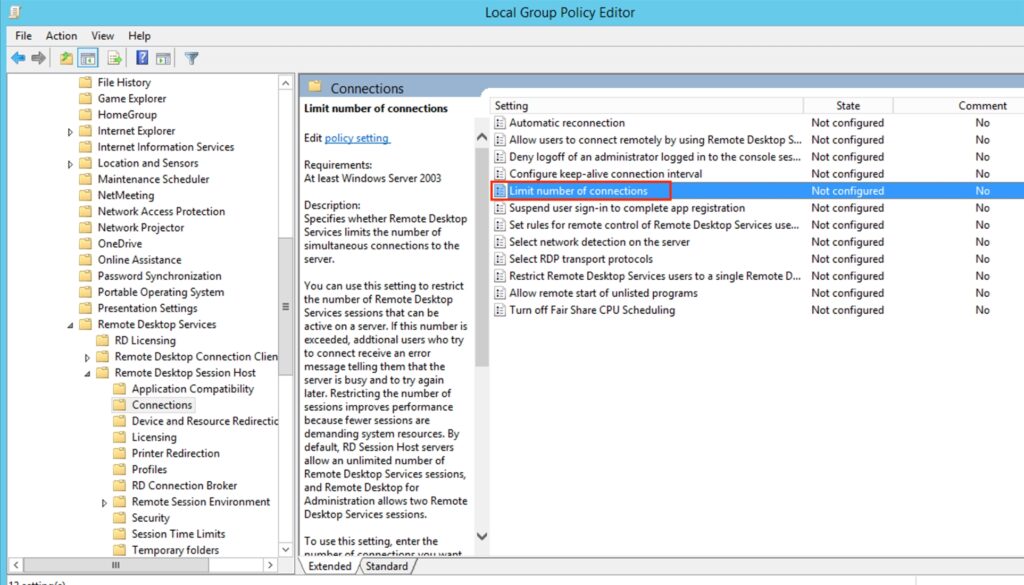 Computer Configuration → Administrative Templates → Windows Components → Remote Desktop Services → Remote Desktop Session Host → Connections